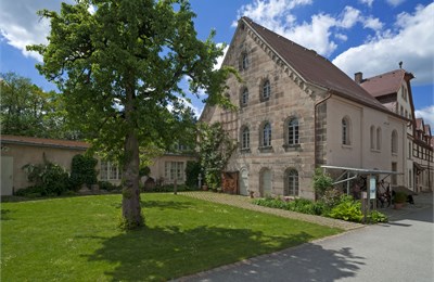 Industrial ensemble of 14 listed buildings in the old town centre of Lauf on the River Pegnitz.
