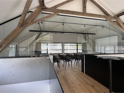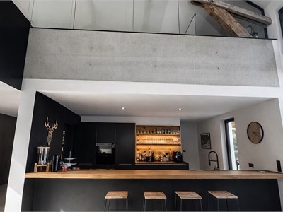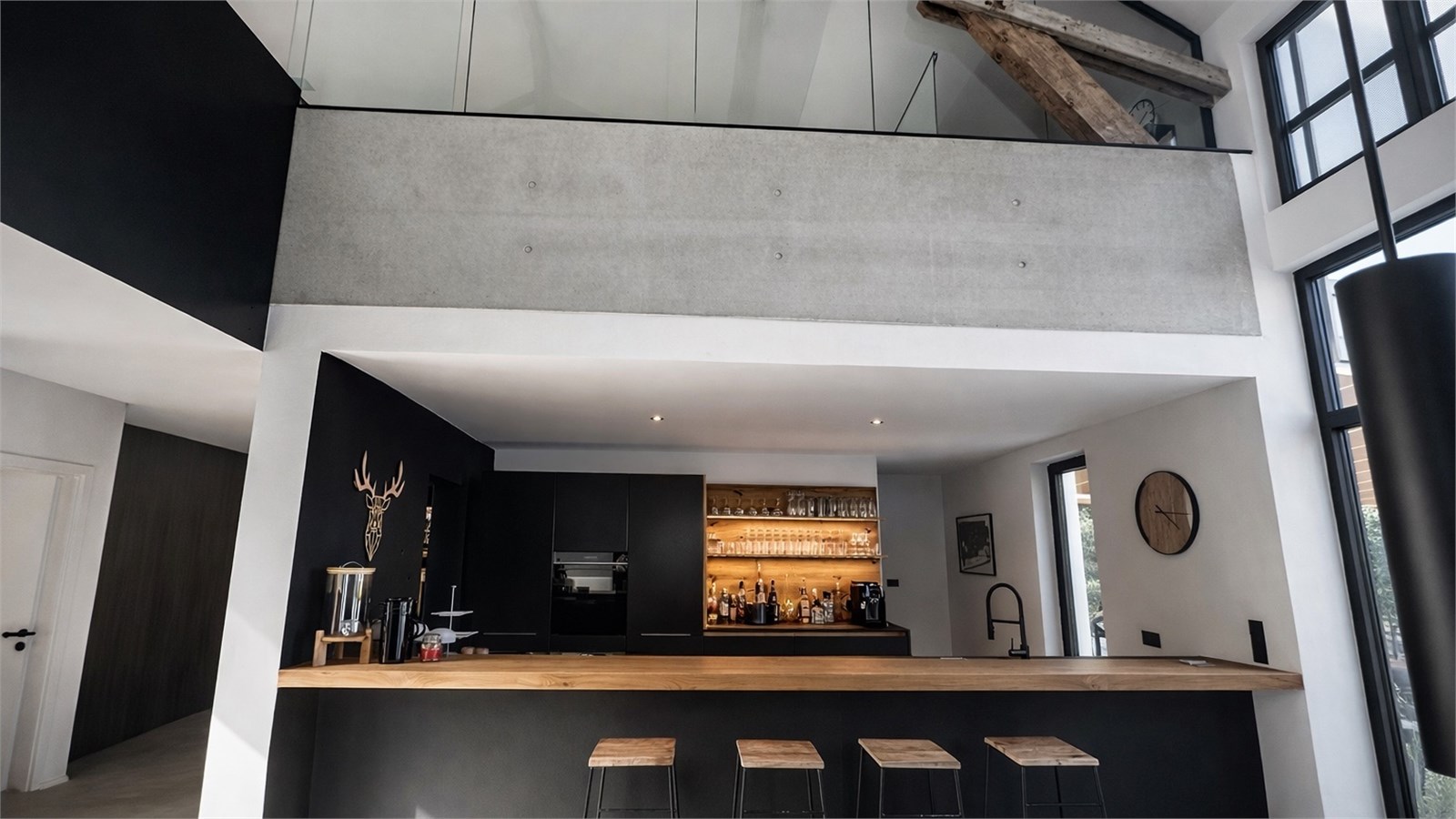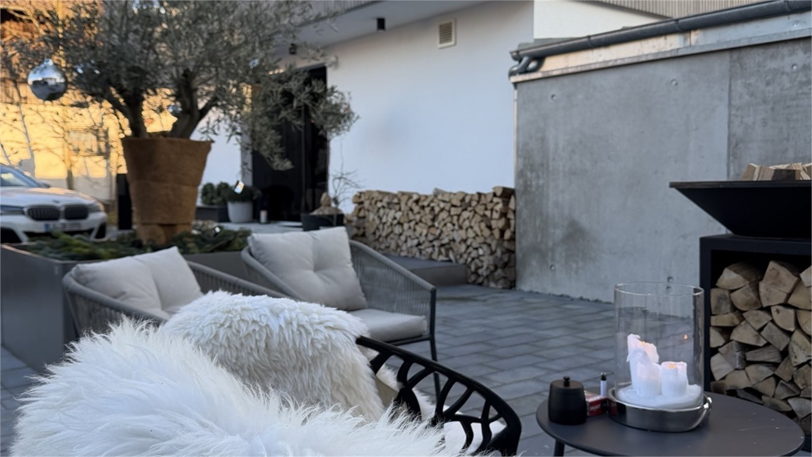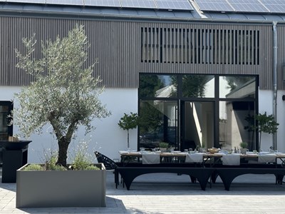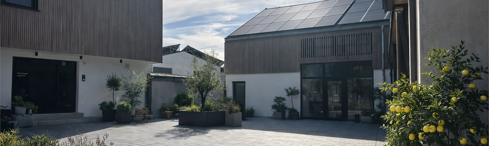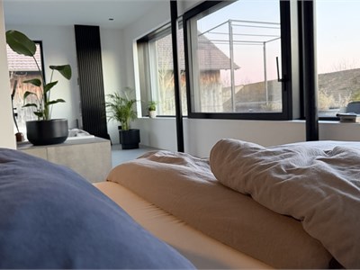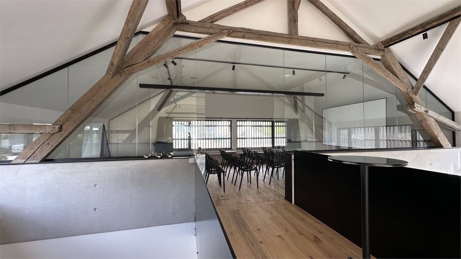 Nestled in a rural region characterised by agriculture and the automotive industry, the Dannerhof estate presents itself as a harmonious blend of tradition and contemporary architecture. The former farmstead has been sensitively renovated and rebuilt, and today combines its historic character with modern living and functional design. The complex comprises: a spacious barn, which can be booked for corporate and private events for up to 70 people, as well as for photo and film shoots; a modern detached house with a pool; and two self-sufficient tiny houses. The barn forms the heart of the estate. With an open roof structure, exposed wooden beams and generous ceiling heights, it combines rural authenticity with modern clarity. Large openings allow plenty of natural light into the space, creating a warm, natural ambience. The barn’s floor plan is clearly and openly structured. The central area forms a spacious main room without fixed partitions. The two tiny houses complement the ensemble as self-contained, self-sufficient retreats. Despite their compact size of 34 m², they offer a full sense of space thanks to intelligent planning. Large windows create brightness and connect the minimalist interior with the surrounding nature. The privately occupied detached house combines modern living with the character of the original farmstead.