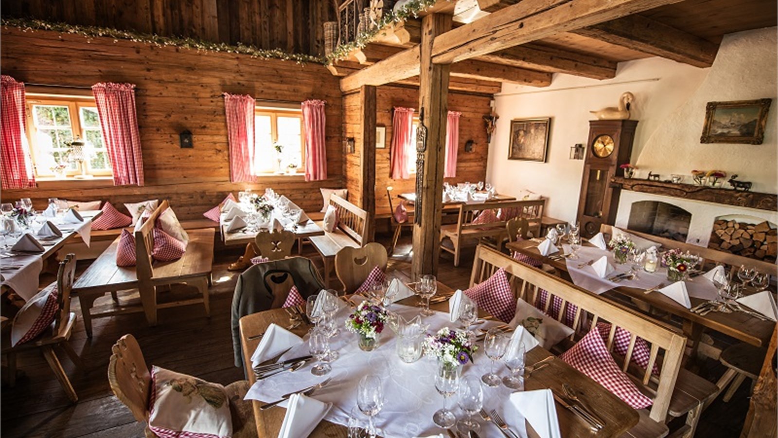 The Egerner Alm has an area of 100 m². In the basement of the cabin, there is a wine cellar, which has an area of 50 m². The Egerner Alm is adjacent to the Relais & Châteaux Egerner Höfe Hotel. There are 80 metered parking spaces in the underground car park and an additional 50 free parking spaces. In addition, there is no access restriction to Aribostrasse, where the hotel is located