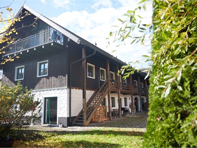 The four-sided Hollerbach farm is in a secluded location. There is an approx. 30-meter pond and a wooded area on the property. The farm was built around 1900 and has been largely modernized. The building itself has various apartments (50 - 130 square meters - one of which is architecturally very special), an office (150 square meters) and a main house (250 square meters). On the property there is also a 12 meter long pool and a sauna house. Keywords: secluded location, courtyard, farm, pool, pond, forest