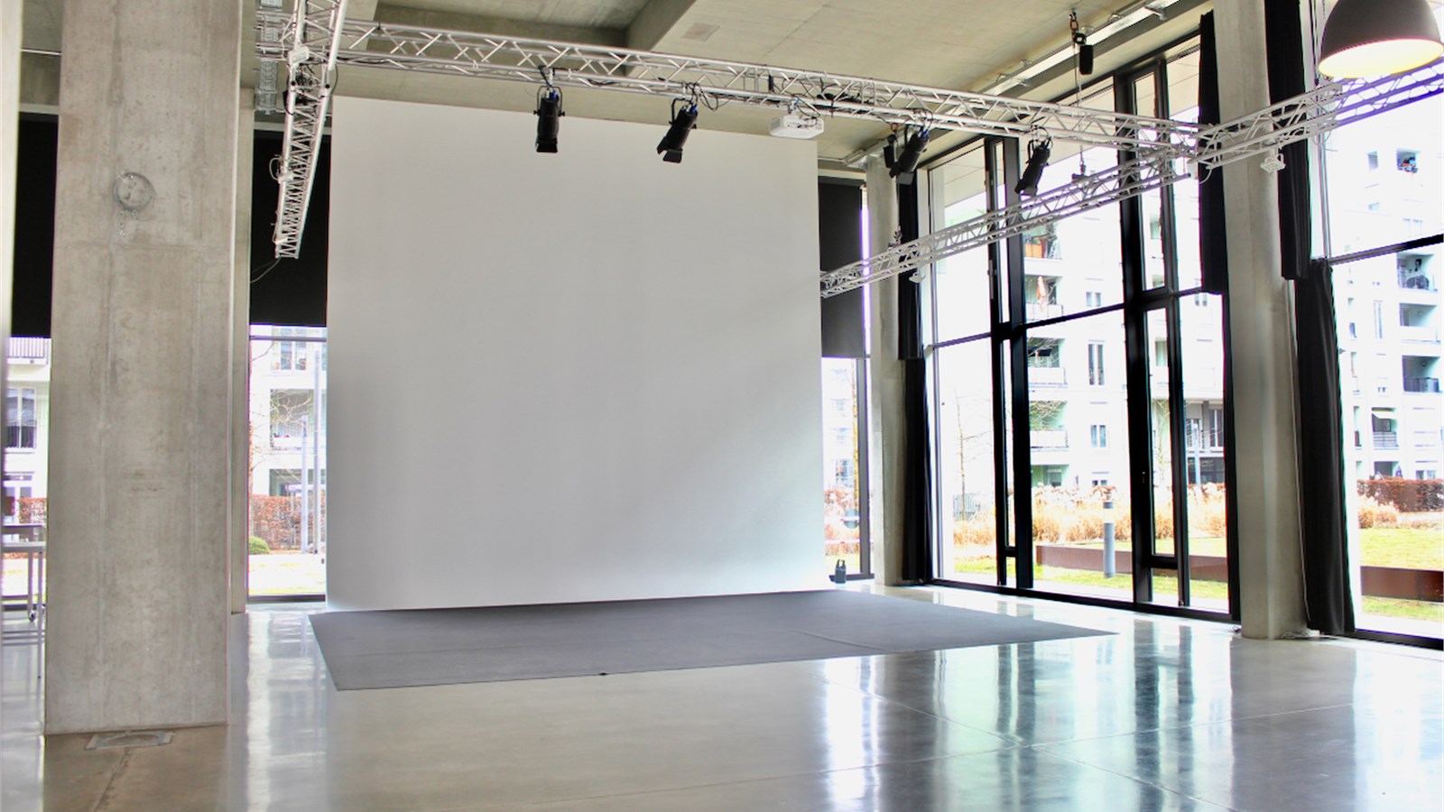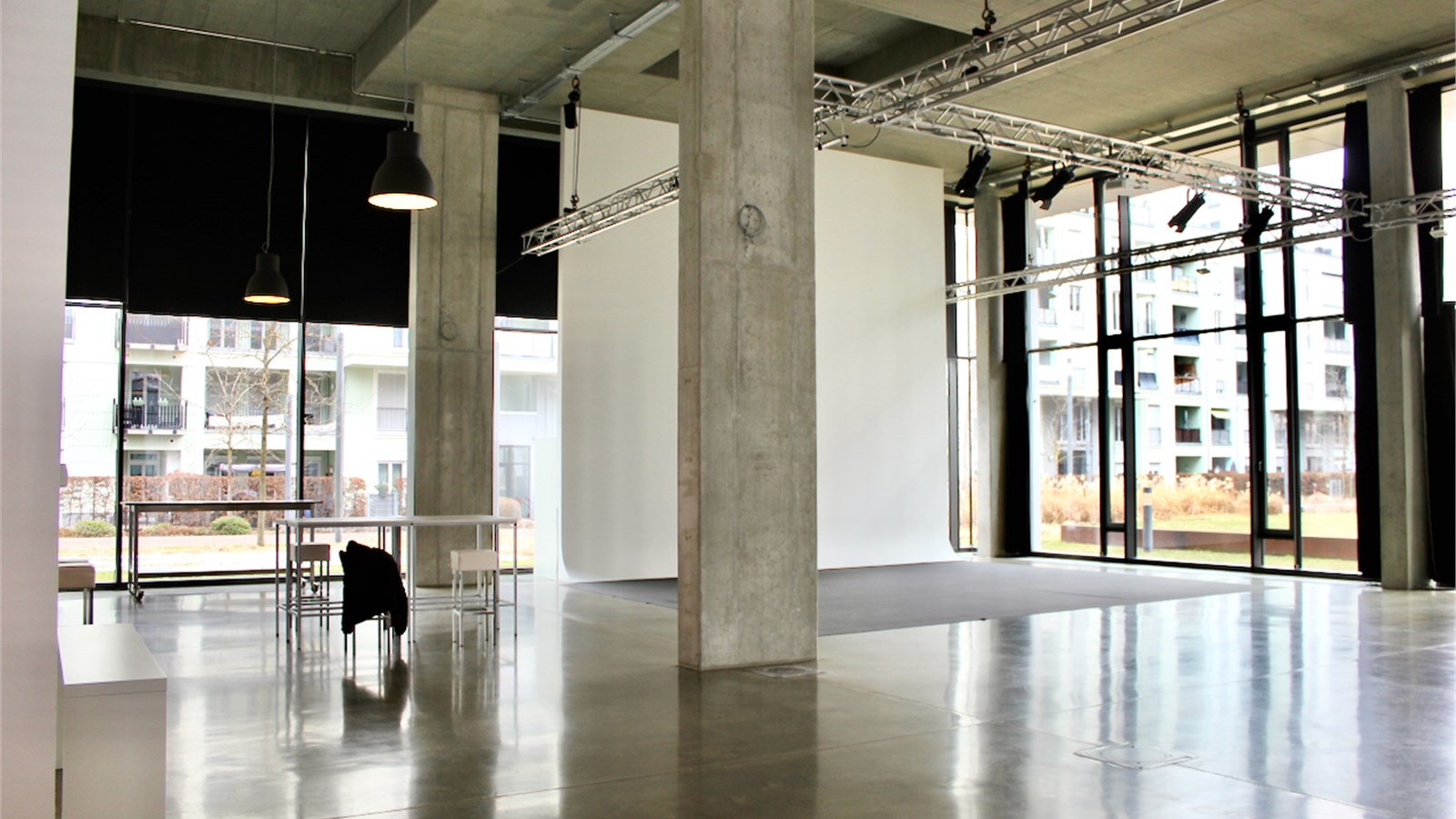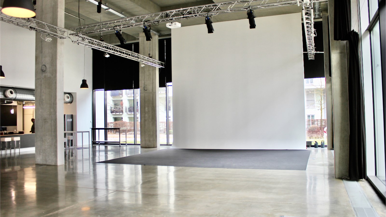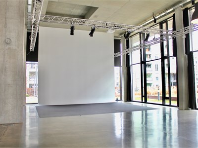 H2O Studio is a film and photography studio as well as an event venue. The studio benefits from natural light but can also be darkened. It is a large space covering approximately 300 square metres with 7-metre-high ceilings. An office, dressing room and toilets are available. The complex is located in a modern building constructed in 2014. Film studio / Photography studio / Studio / Event venue / Events / Loft / Entrance hall.