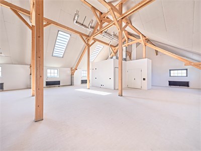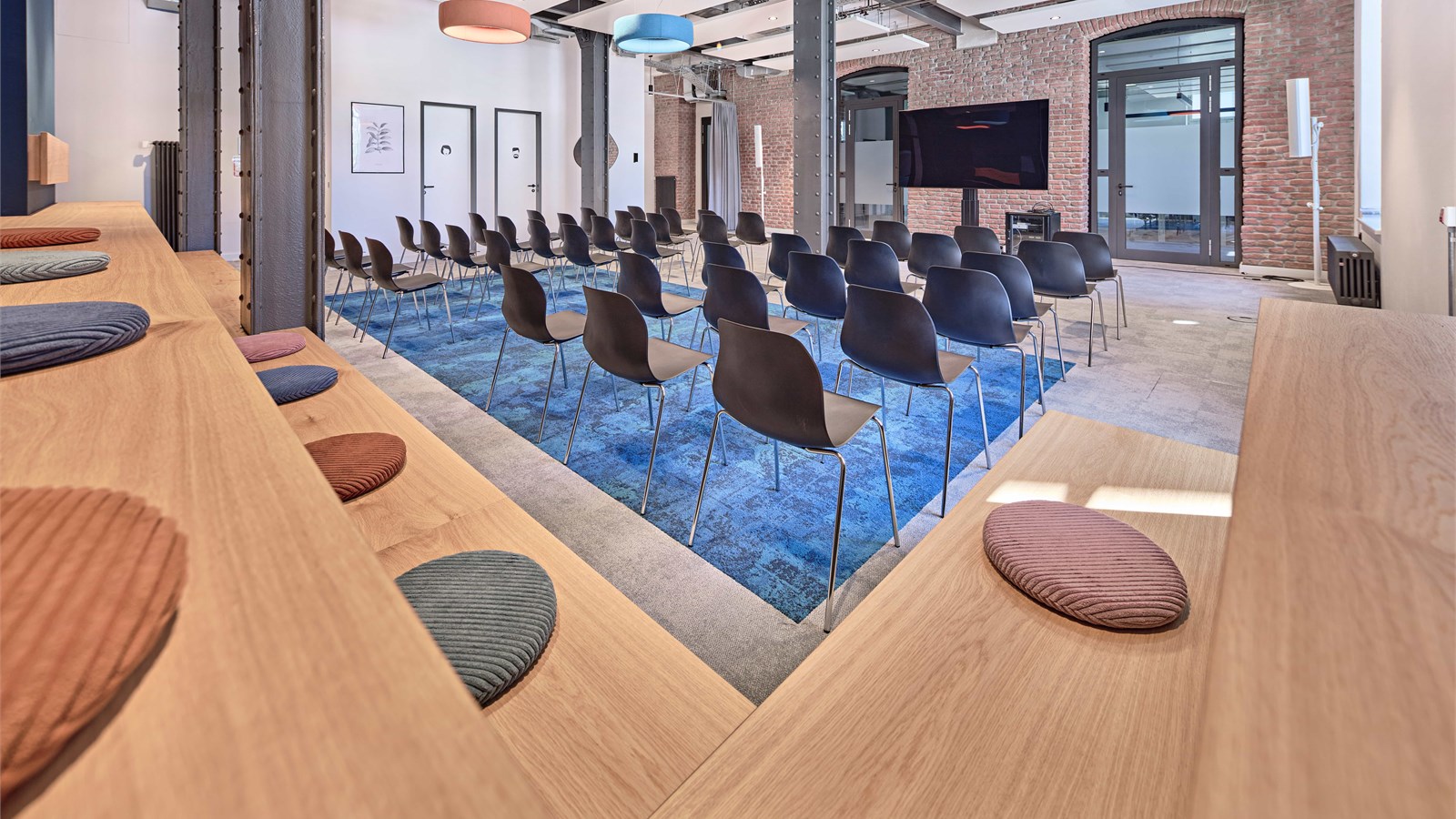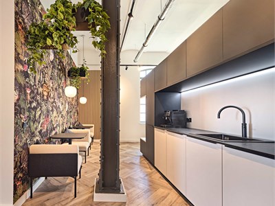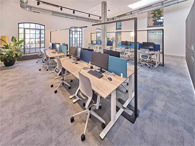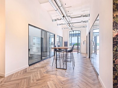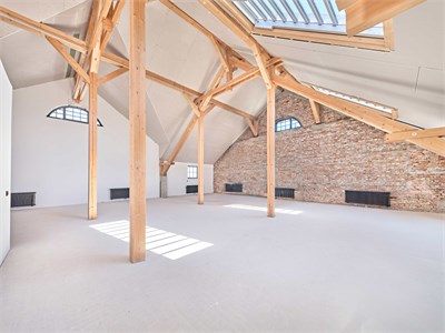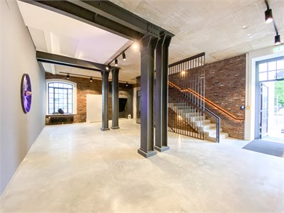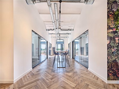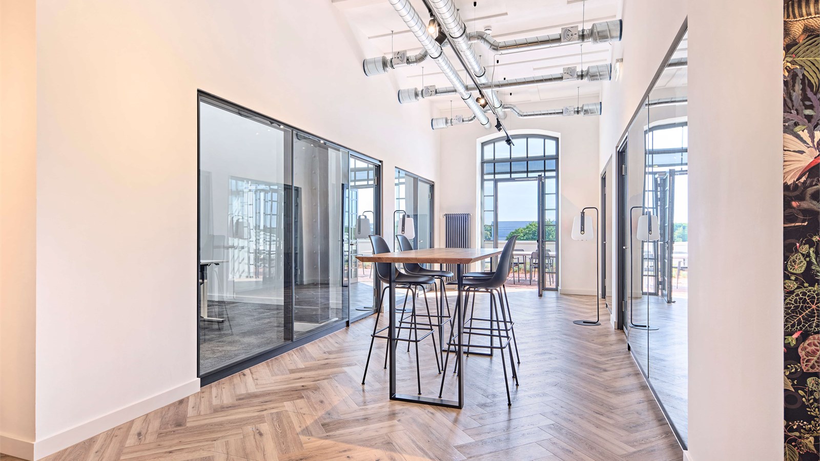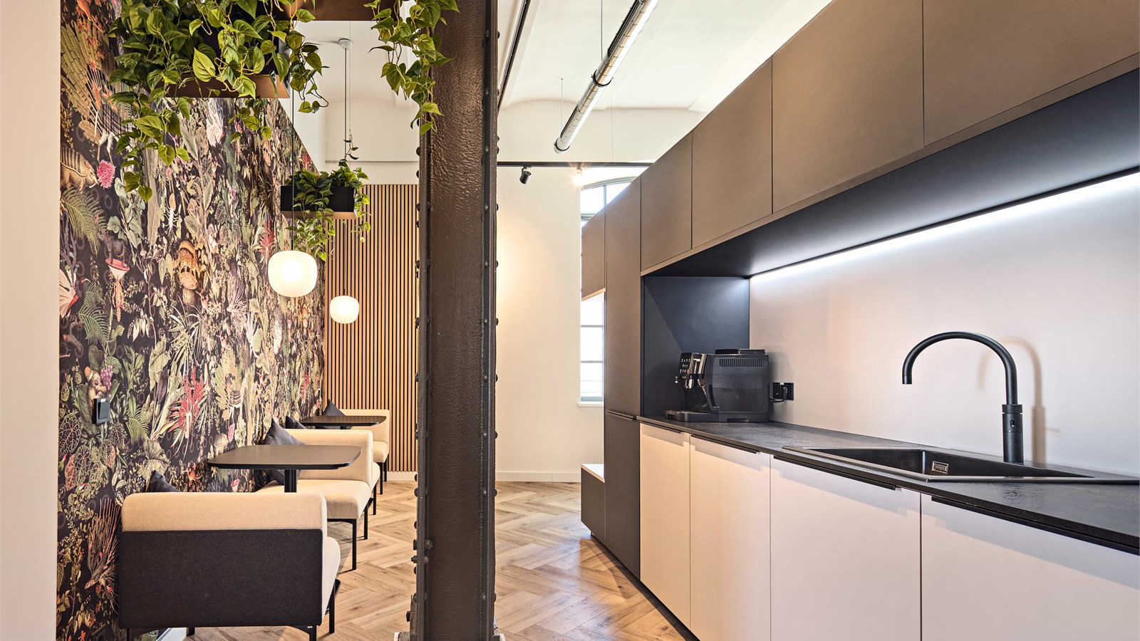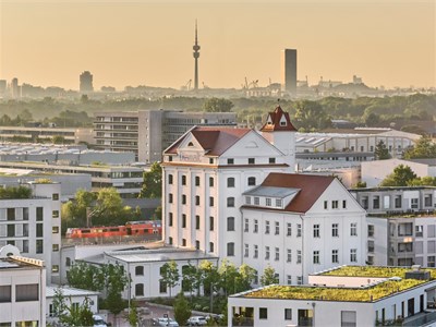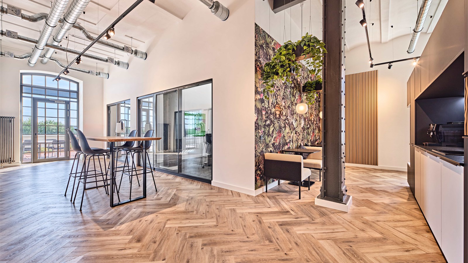 A listed, revitalized, historic, and central building, formerly a soup seasoning factory and workshop, on the grounds of the former Diamalt factory in Allach. Here, history meets modernity. Where malt candies and soup seasoning were once produced, modern loft offices with an industrial look now stand alongside newly built employee apartments and a daycare center. Construction year 2019-2024; Listed building, Industrial, Office, Coworking