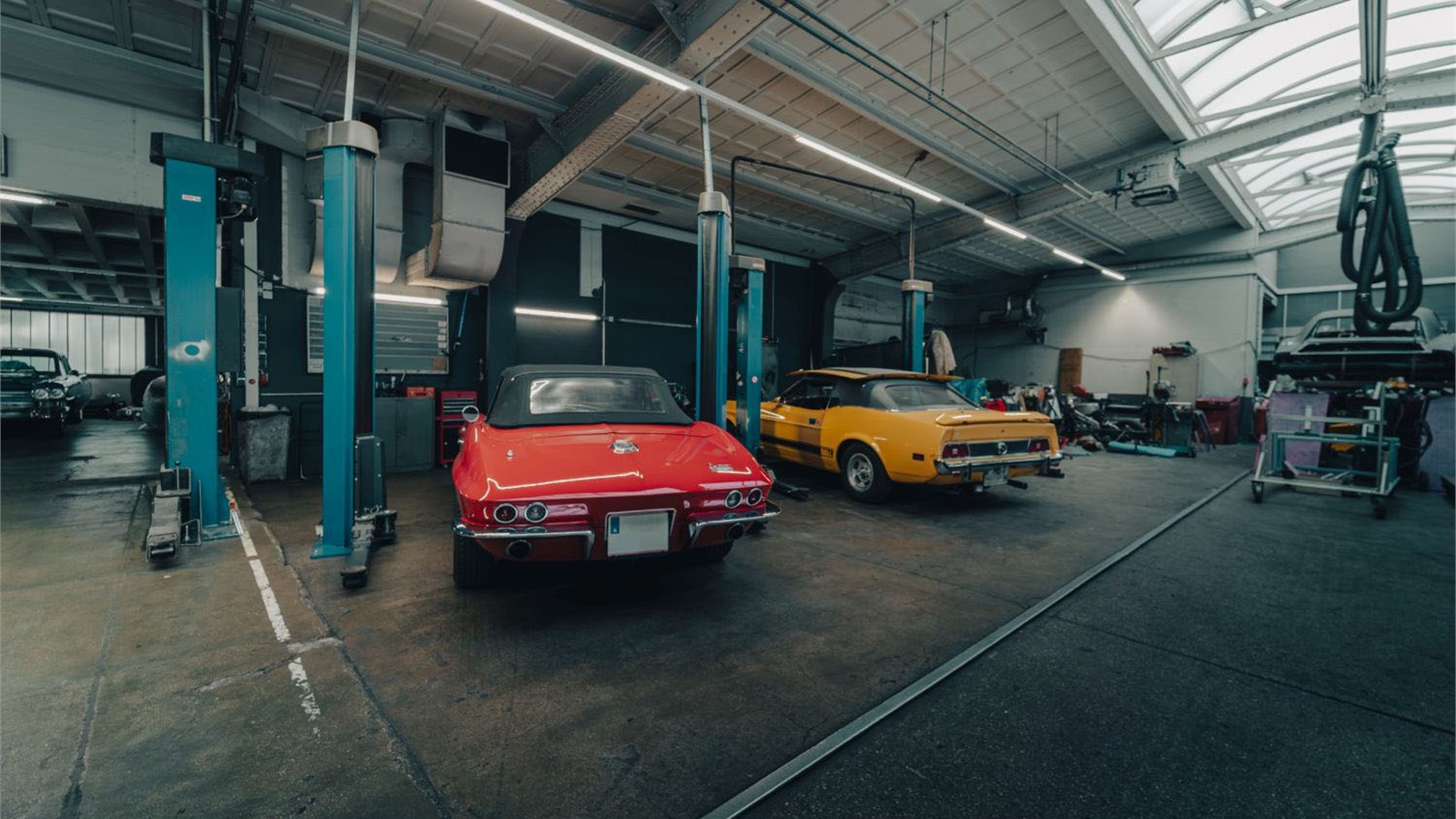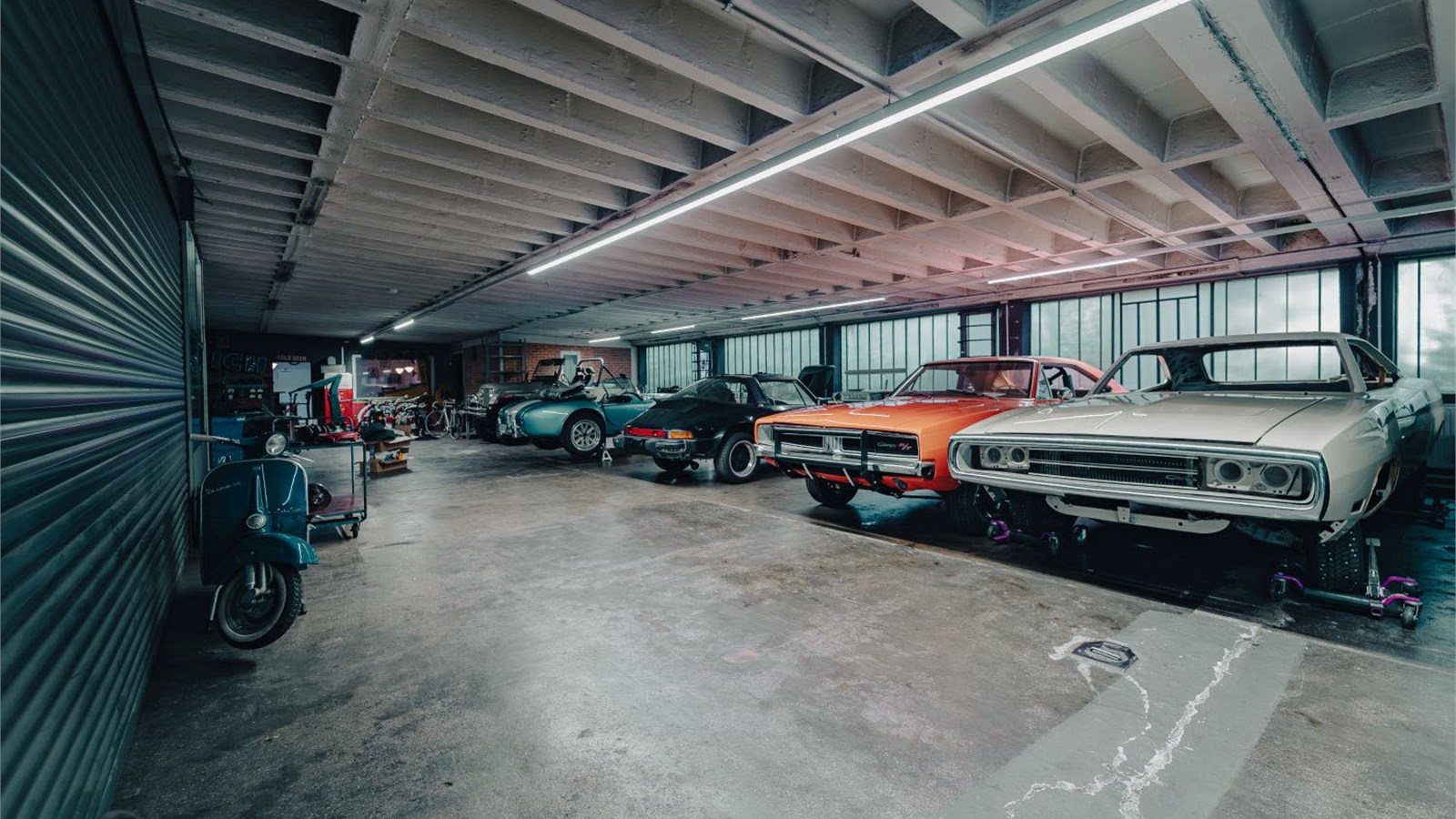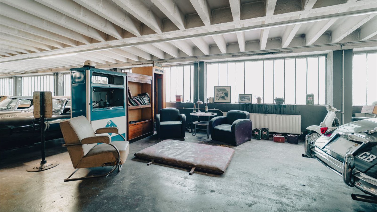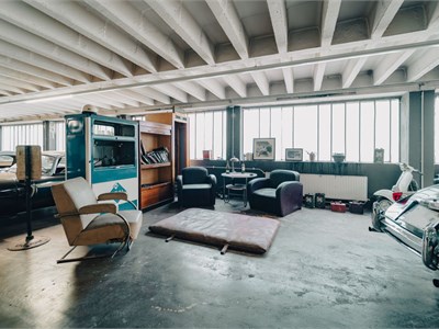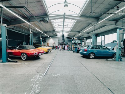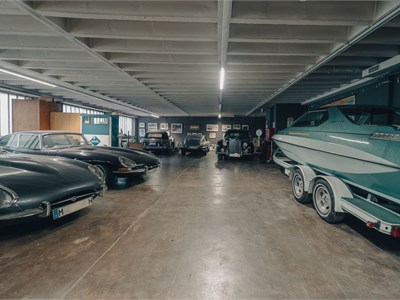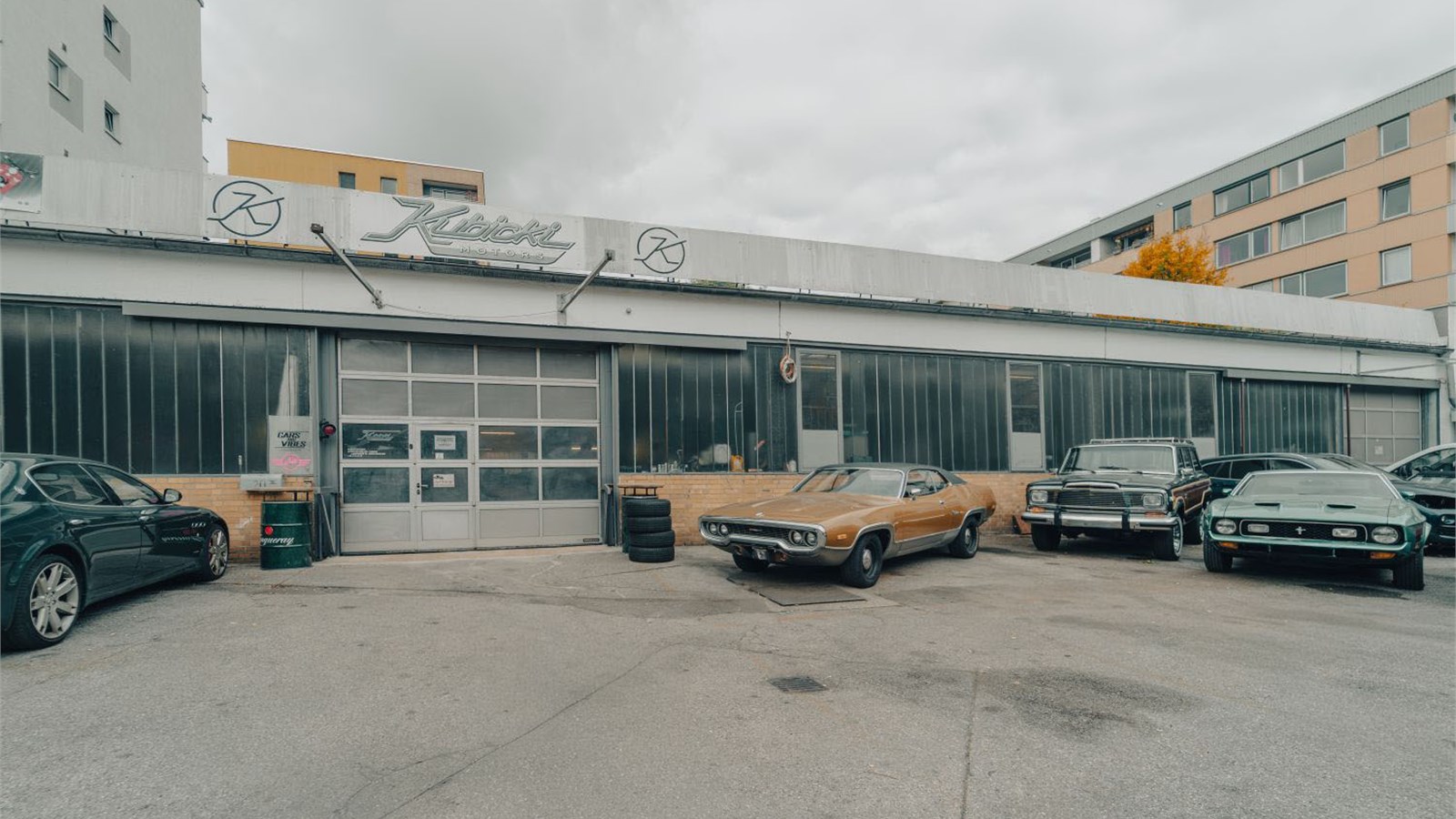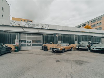Here, automotive passion meets exceptional architecture: A workshop hall housing various businesses, including a large classic car restoration workshop, complete with underground parking and a vault with parking spaces, as well as a private bar with seating. Every area has been designed with meticulous attention to detail, combining functionality with an incomparably authentic atmosphere. These spaces provide the perfect setting for extraordinary projects, productions, and events. Upper Bavaria, workshop, classic car workshop, workshop hall, underground parking, classic cars, garage