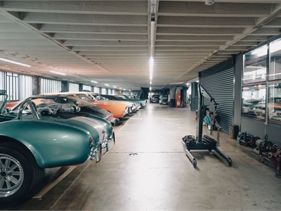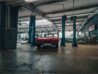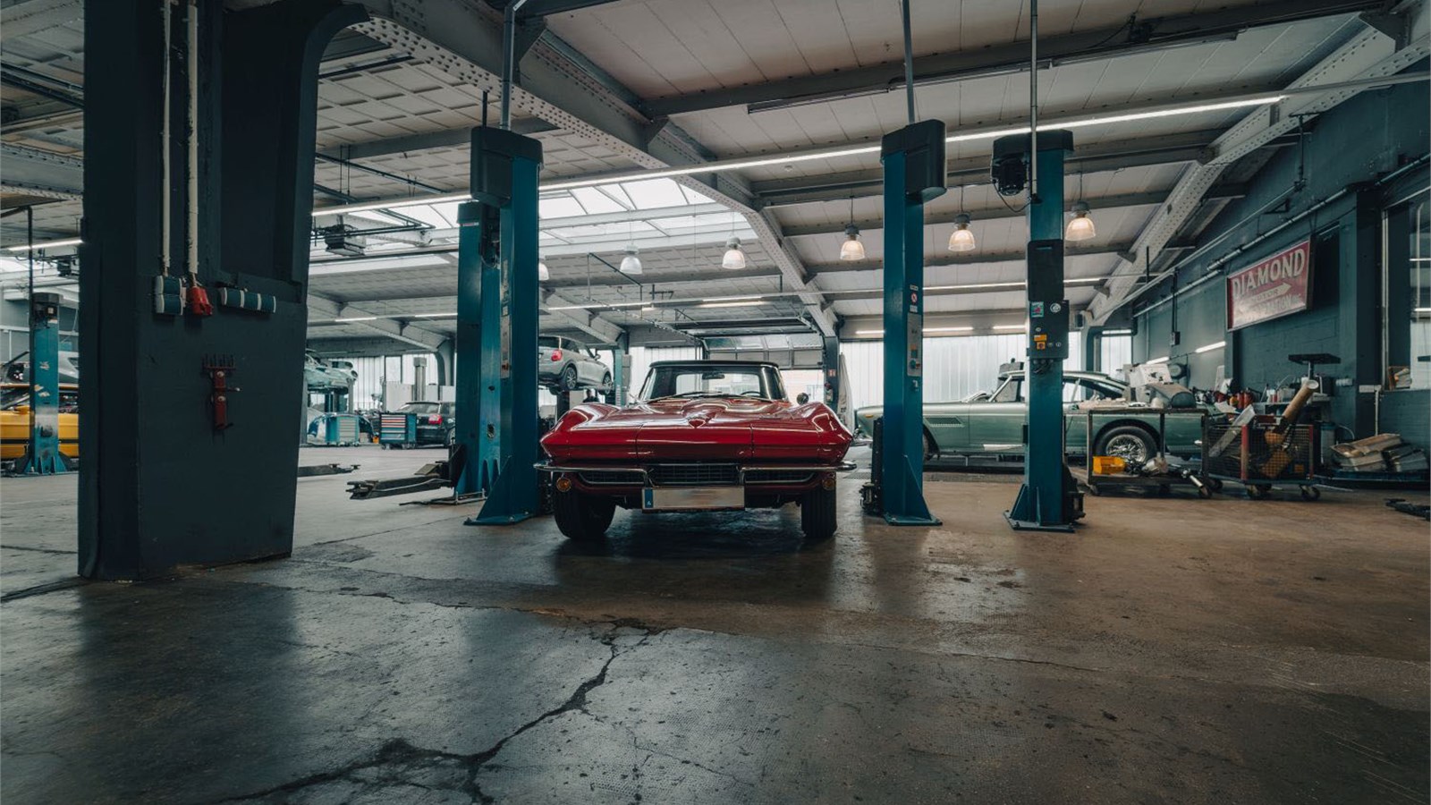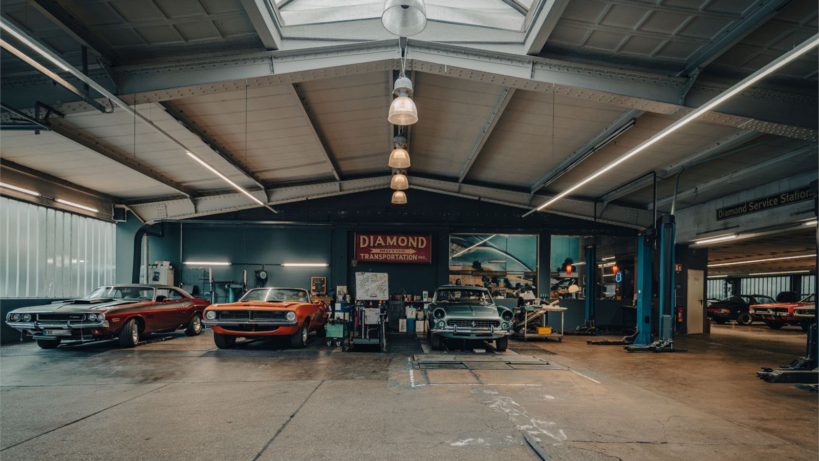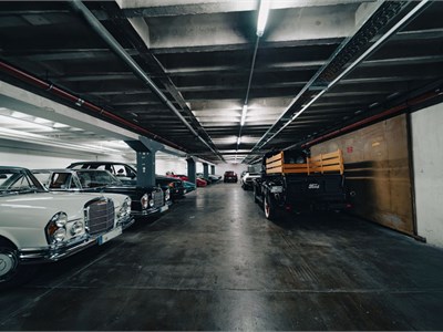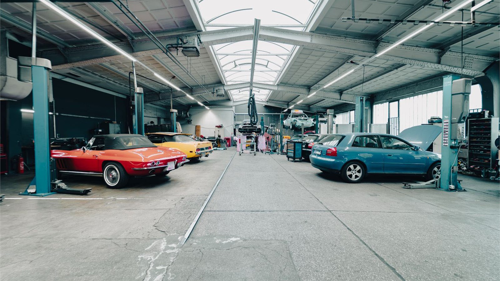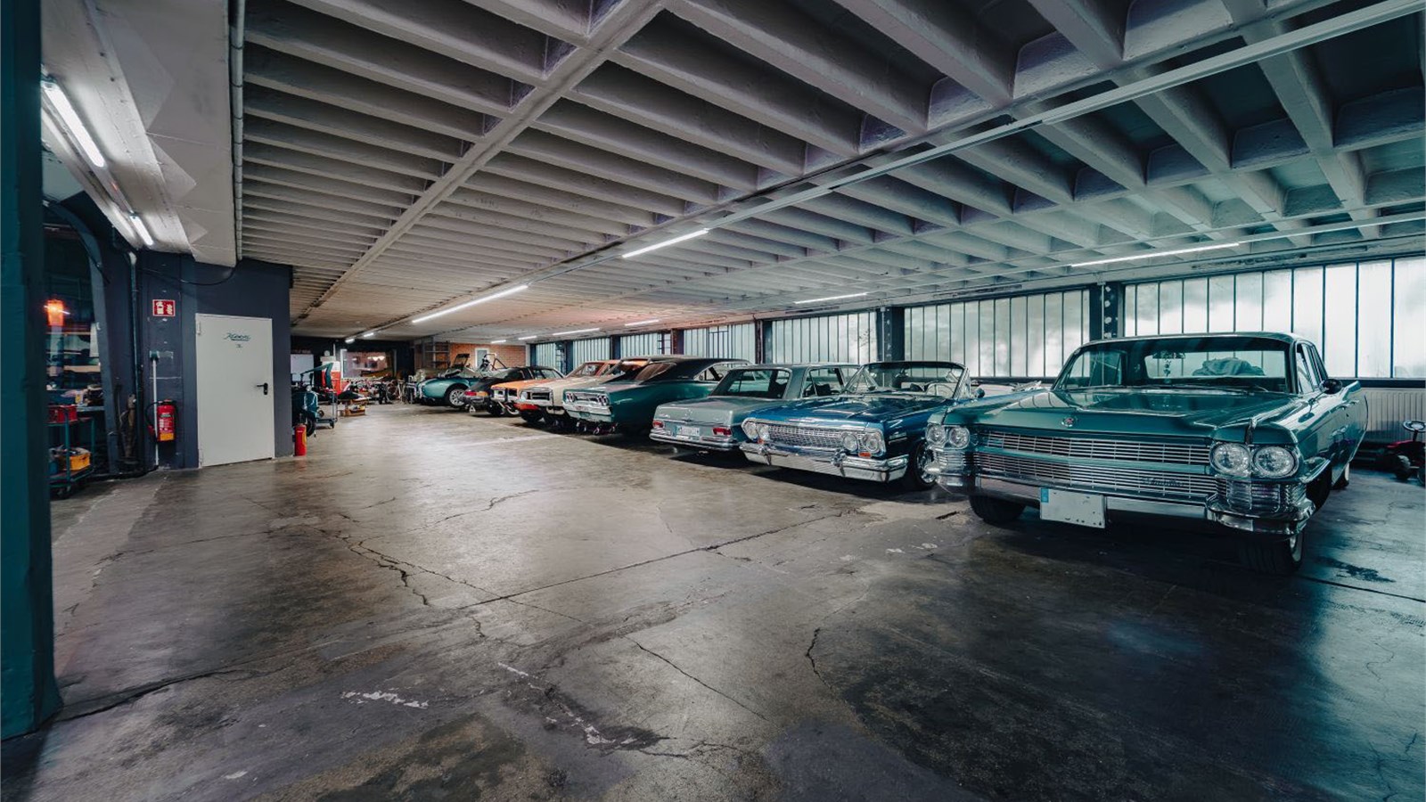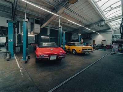 Here, automotive passion meets exceptional architecture: A workshop hall housing various businesses, including a large classic car restoration workshop, complete with underground parking and a vault with parking spaces, as well as a private bar with seating. Every area has been designed with meticulous attention to detail, combining functionality with an incomparably authentic atmosphere. These spaces provide the perfect setting for extraordinary projects, productions, and events. Upper Bavaria, workshop, classic car workshop, workshop hall, underground parking, classic cars, garage
