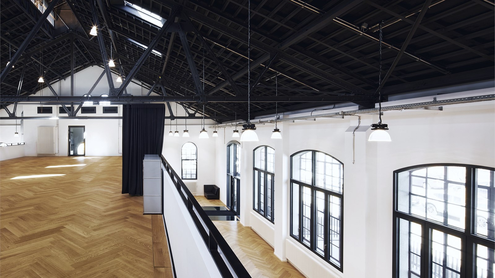 Exclusive event location / hall with industrial flair and loft feeling in historic brick building from 1906, which is completely and inside modern renovated. With lots of daylight, spacious rooms, high ceilings, gallery, boiler house and much more. Suitable as a hall, office, kitchen, event room, entrance area, etc. as a filming location.