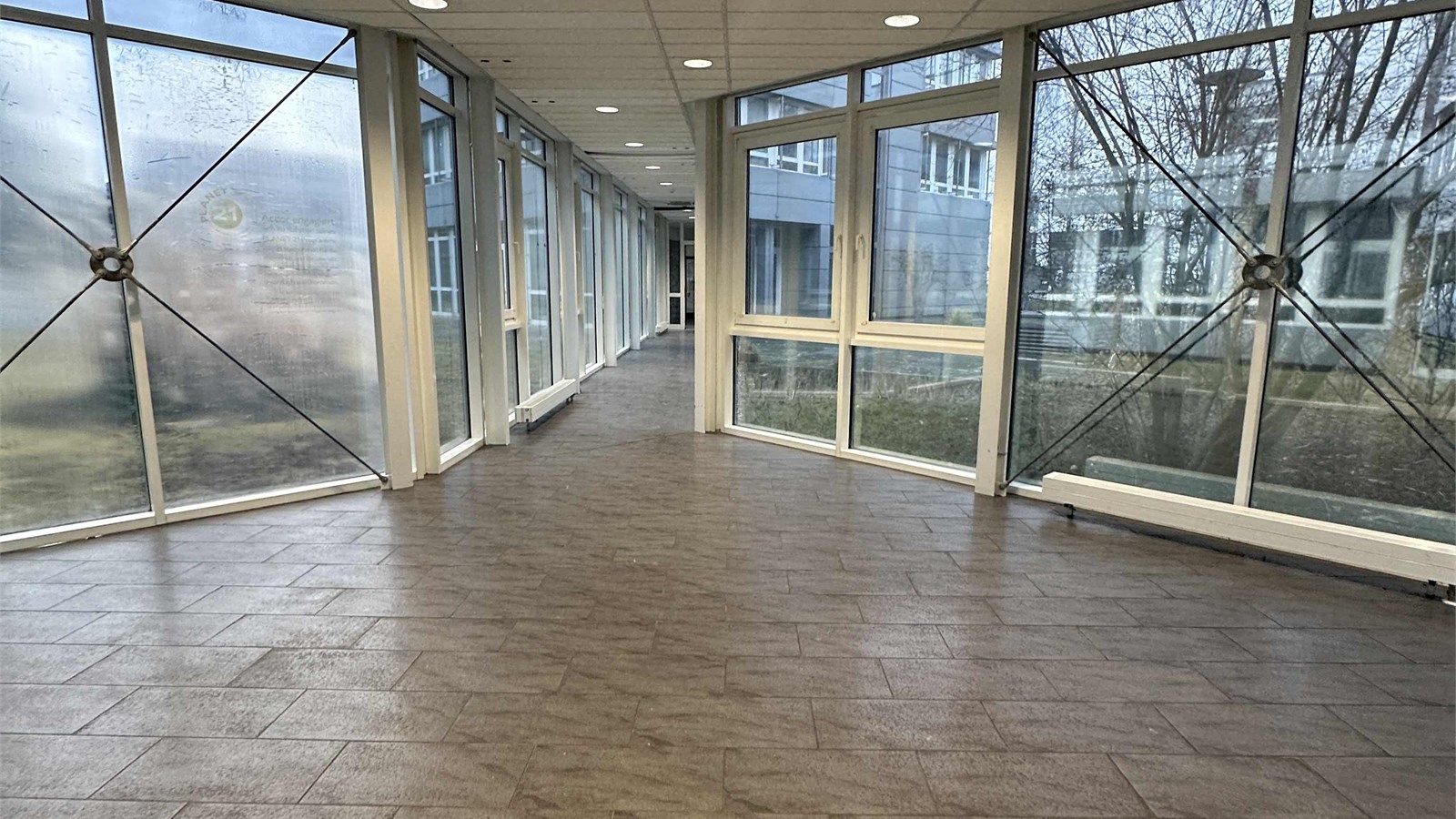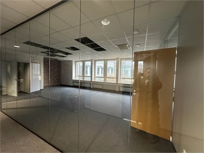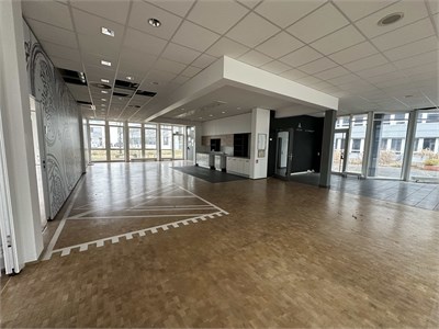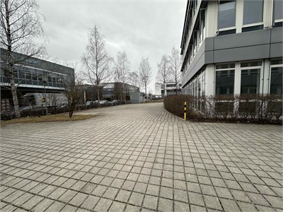Vacant office building with courtyard. Built in 2000; approximately 6300 m² with truck access and 100 parking spaces.